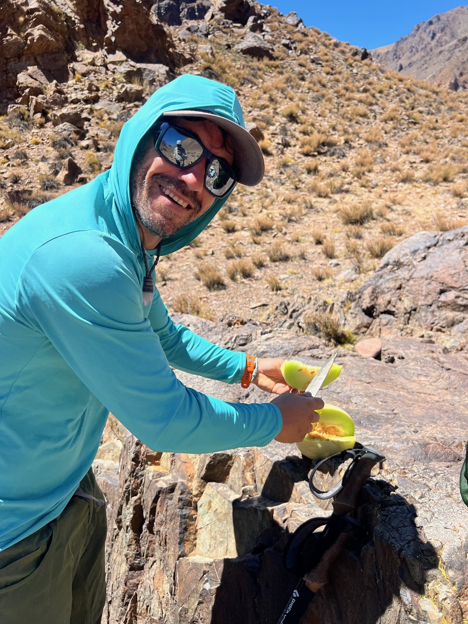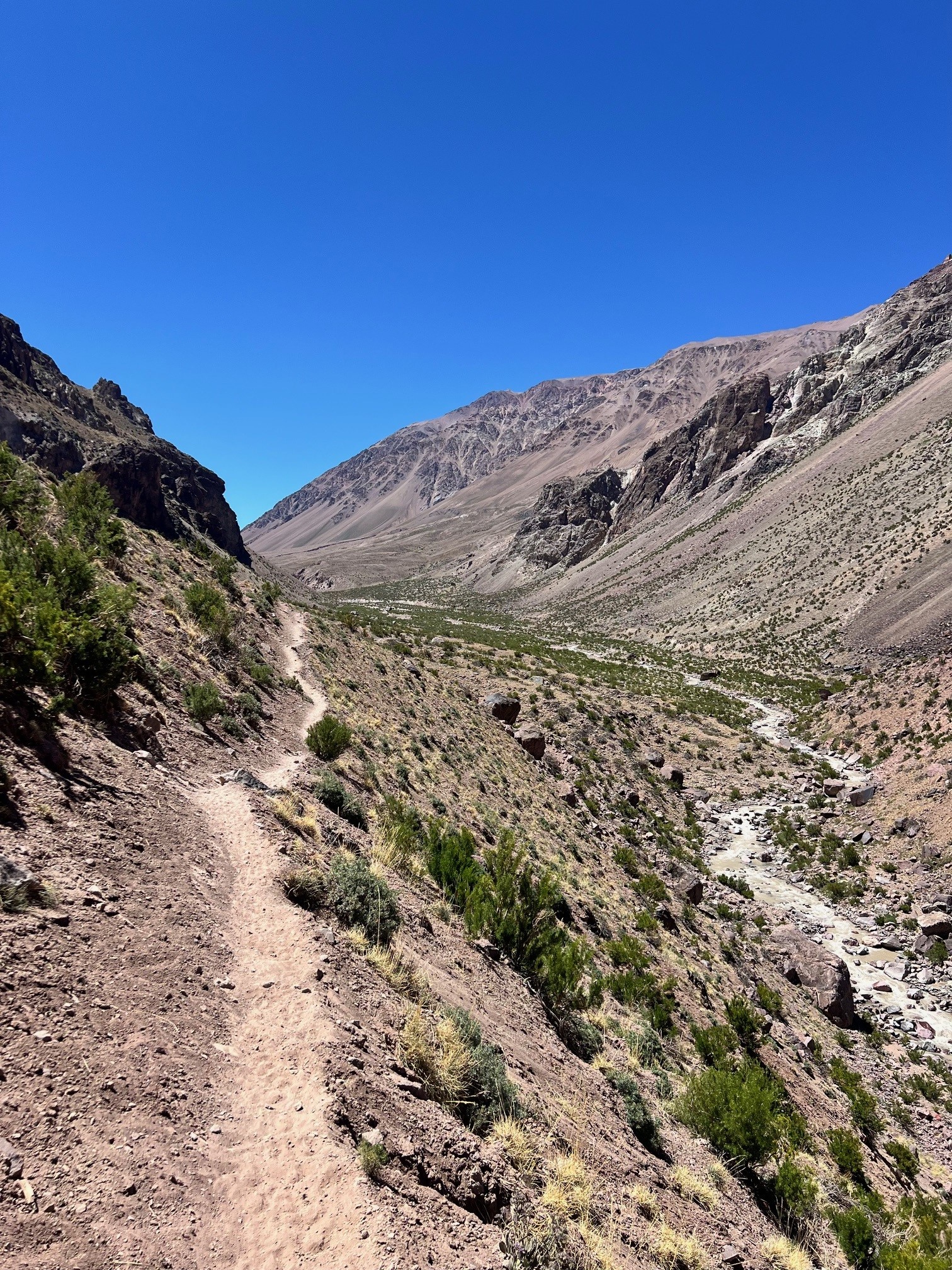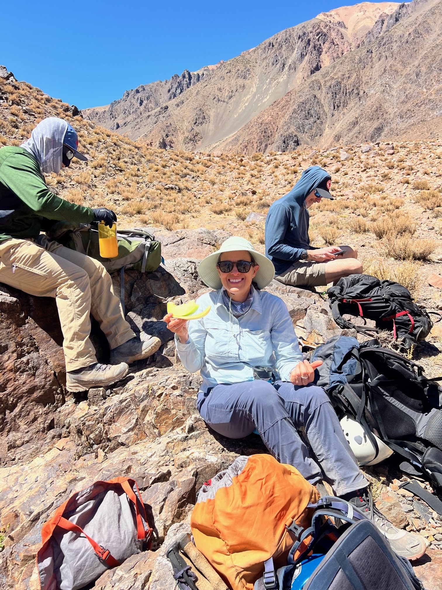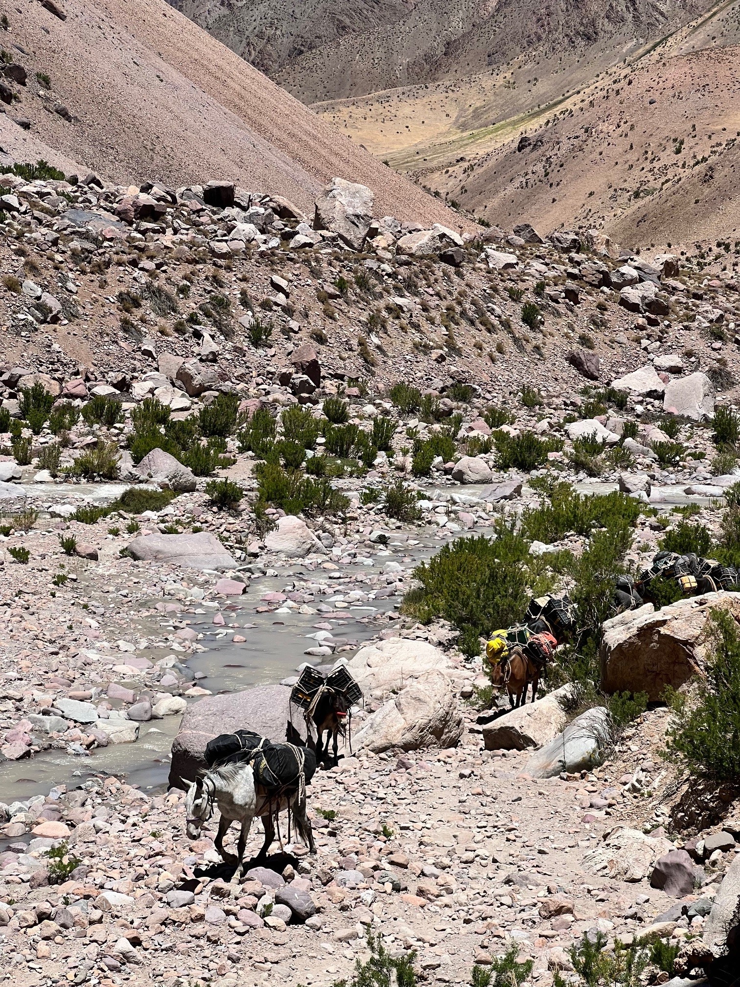 Quick check in from IMG Guide Max Bond, “Excellent first day, we made it to Pampa de Leñas in great style!  Everyone is feeling good!”  The team hiked up the Vacas River today and reached first camp (9,678 ft/2864 m).   Tomorrow they’ll make their way to Casa de Piedra (10,629 ft/3245 m).