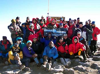 Web Waring Climbers on the summit of Kilimanjaro, Africa